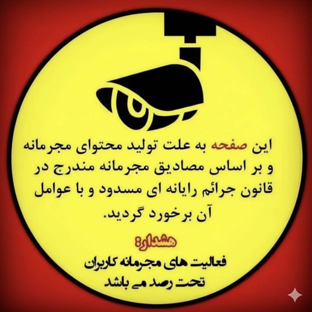 Since January 2022, Iran’s Cyber Morality Police has carried out an organized takedown campaign targeting the social media accounts of Iranian lifestyle and fashion bloggers who appear to promote Western aesthetics, language, commodities, and mannerisms. Once an account is seized, all visual content—including photos, videos, and highlight reels—is wiped and replaced with a standardized warning notice. These notices typically feature insignia reminiscent of paramilitary or security-service emblems, sometimes a bright yellow banner stamped with red “blocked” text, other times bordered by slogans such as “a healthy online space is your right,” and other times a lone illustration of a surveillance camera reinforcing an atmosphere of monitoring and control.