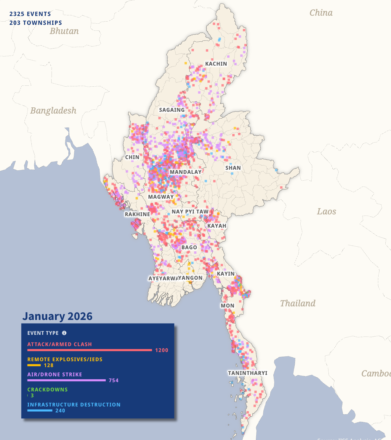 Preventing the military junta from consolidating administrative control of localities has been a central objective of the country’s diverse popular resistance. Historically, successive military regimes in Myanmar have relied on local administrators and police to oppress local communities and to identify and eliminate any threats to military control. The resistance, therefore, puts a priority on grass-roots action, seeking to: 1) prevent the military junta from establishing control over local administrative structures; 2) dislodge junta-aligned local administrators and police departments; and 3) establish local administrative structures that are supportive of the resistance movement.